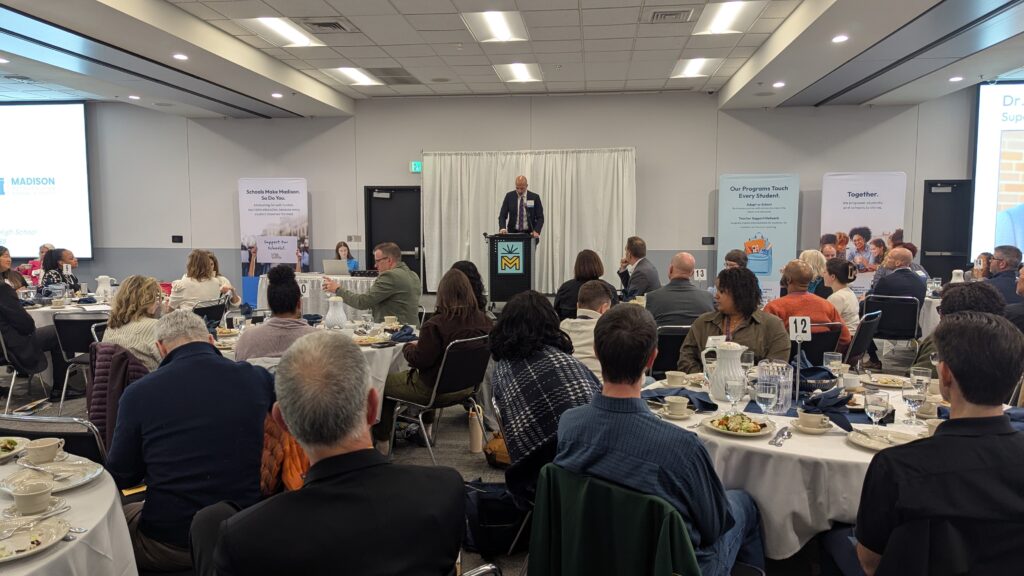 The day concluded with a luncheon at the Alliant Energy Center, where speakers — including Downtown Madison, Inc. President Jason Ilstrup, MPSF Board Chair Jill Jokela, Foundation President Melinda Heinritz, and Superintendent Gothard — reflected on the power of collaboration between schools, businesses, and community partners.